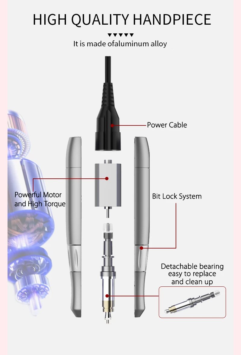 Електрична бушилица за нокте није лако оштетити ручни део 65в 35000рпм