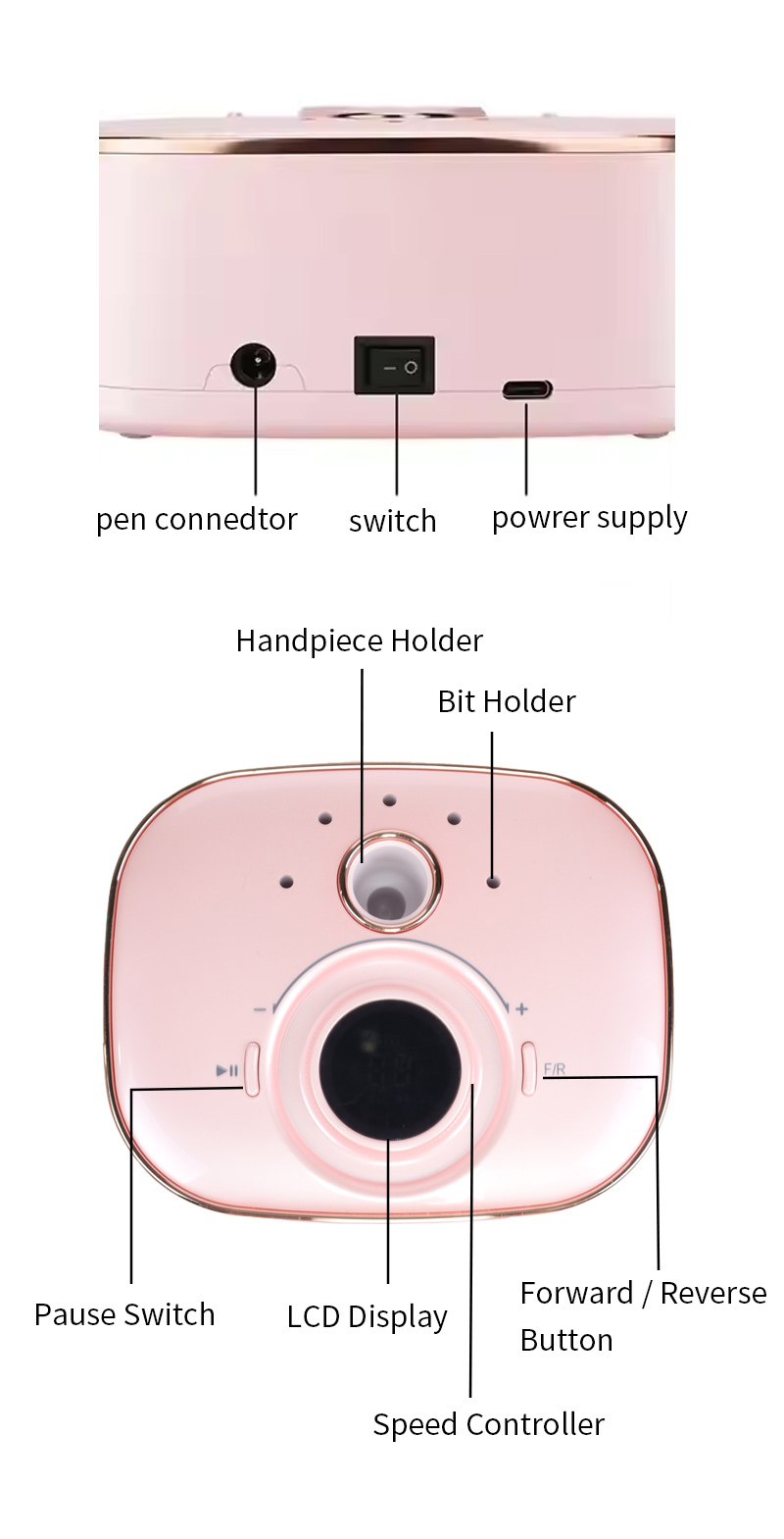Преносна електрична бушилица за нокте са снажним мотором 65в 35000рпм
