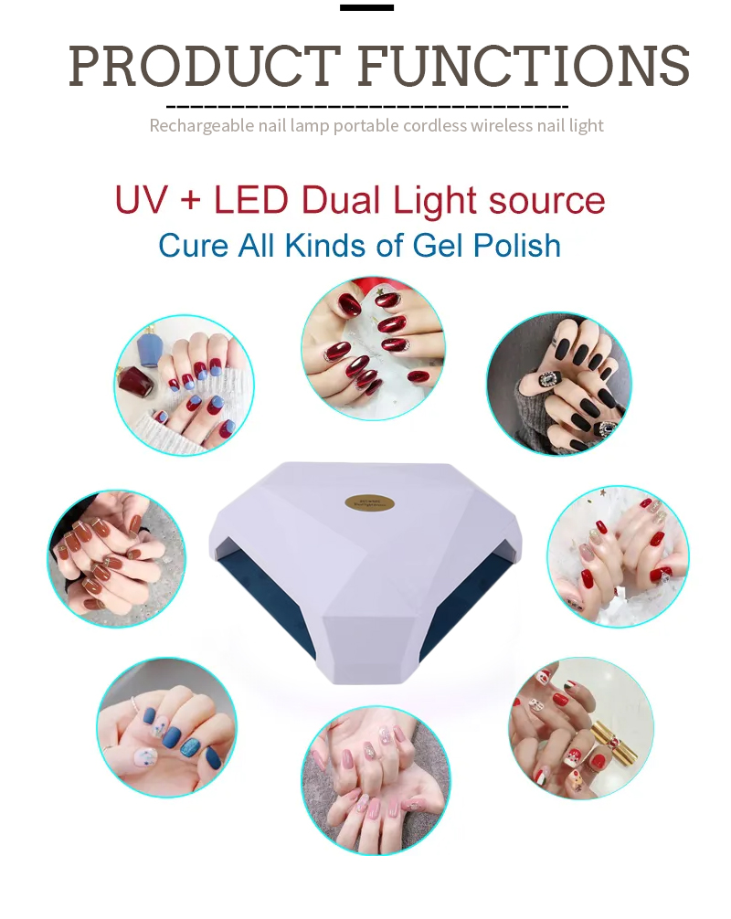 Производ осигурава да је исекну и засељивање без скупљања. Његови двоструки извори светлости пружају нежно гријање да би се спречило ручно уклањање боје и напрезања очију, погодан за обе руке и ноге, испоручујући изузетно брзе резултате сушења.