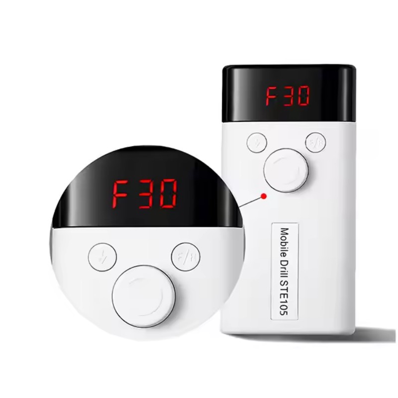 Дизајн дисплеја овог електричног уређаја за полирање ноктију 30.000 обртаја у минути има прекидач за укључивање/искључивање и ротацију напред/назад за укупно активирање једним дугметом, утичницу за брзо пуњење на дну, заменљиву утичницу за бушилицу на врху и подесиву брзину у три положаја како би се задовољиле различите потребе.