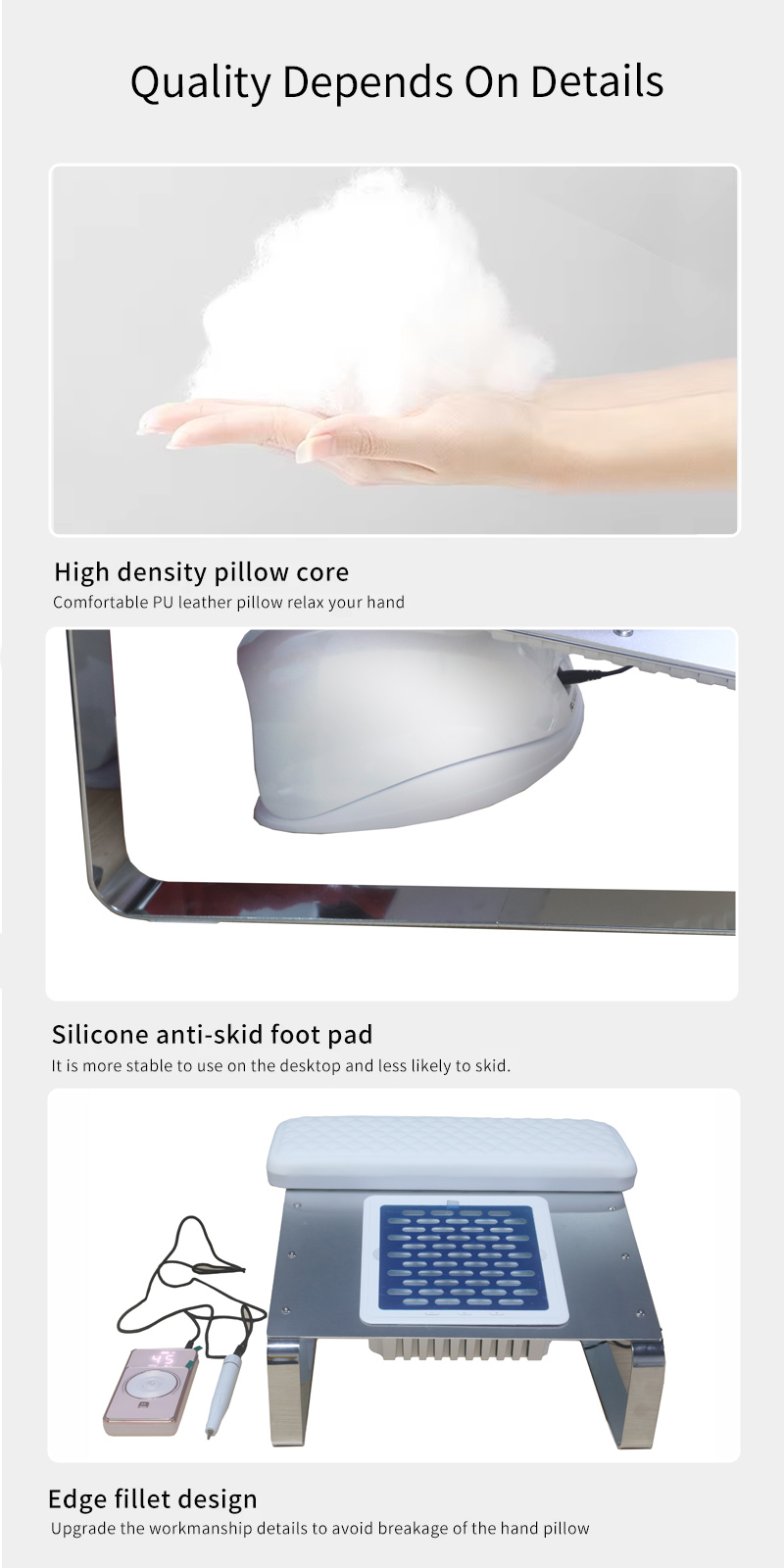 Производи снажна адсорпција остатака ноктију не пропушта прашину, одржавају радну површину чистом и уредном, брзо усисавање не пропушта прашину велике снаге ефикасније.