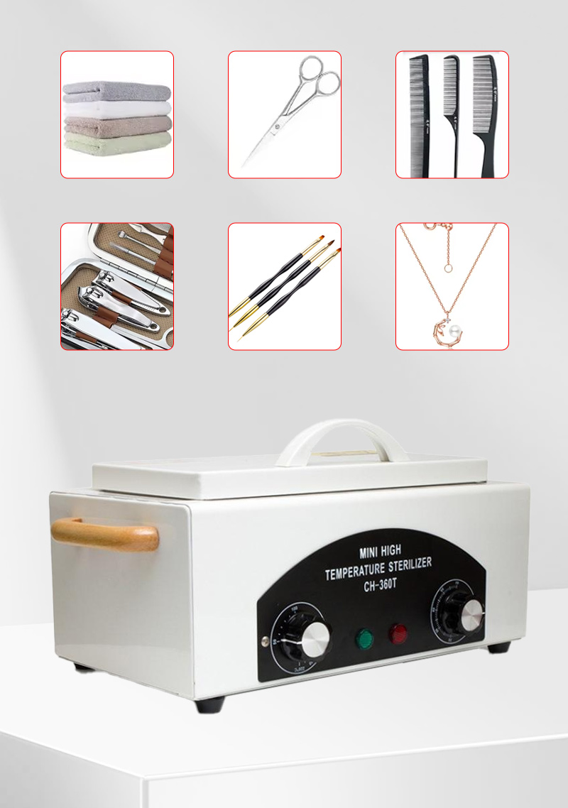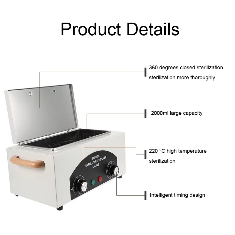 Овај стерилизатор првенствено генерише топлоту кроз грејни прстен, користећи високе температуре за дезинфекцију.