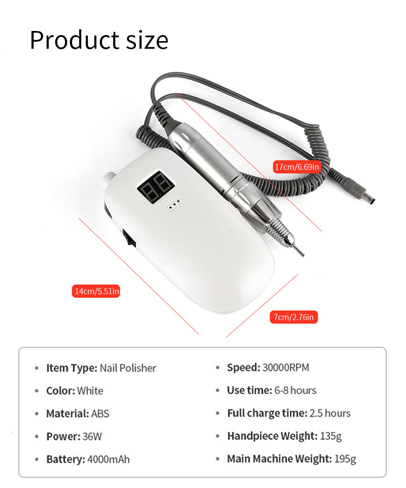 Електрична бушилица за нокте није лако оштетити ручни део 65в 35000рпм