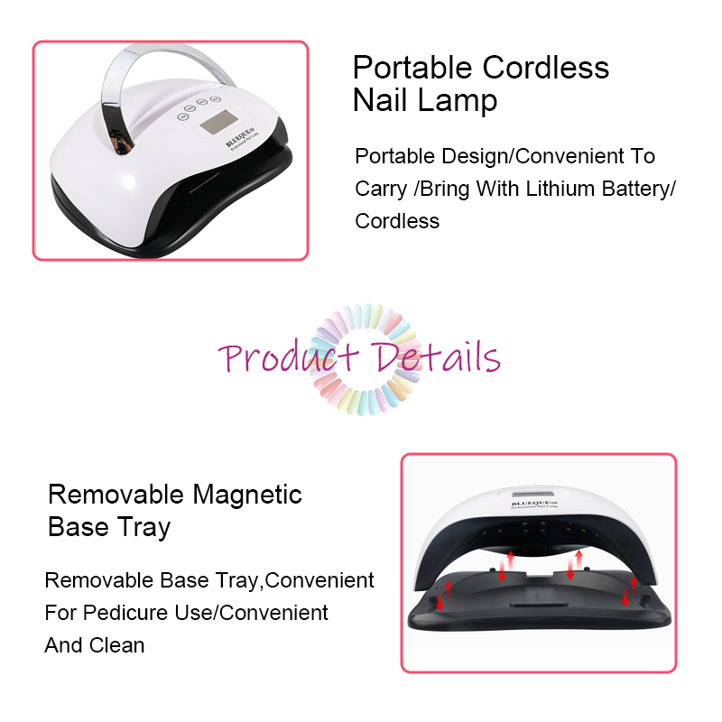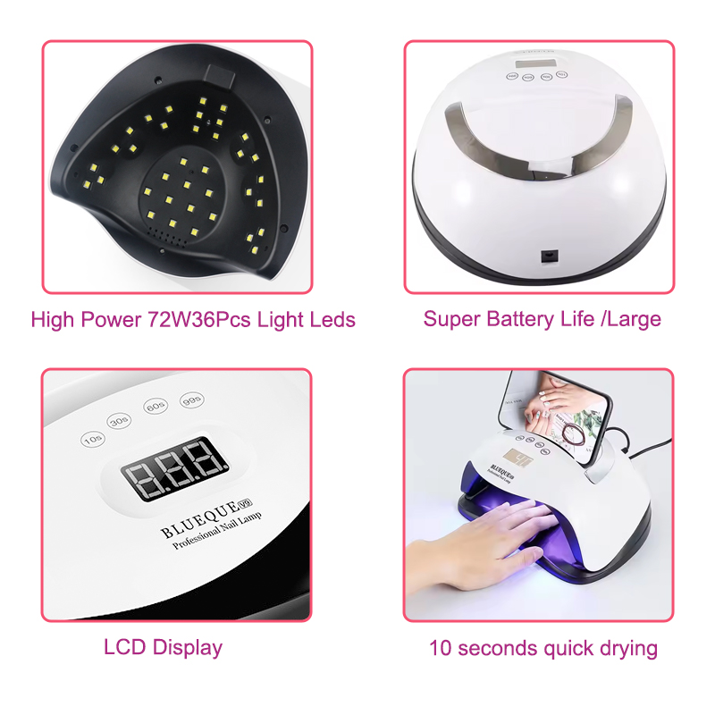 Производ обезбеђује равномерно сушење лепка без скупљања. Његови двоструки извори светлости обезбеђују нежно загревање како би спречили промену боје руку и напрезање очију, погодно за руке и стопала, дајући изузетно брзе резултате сушења.