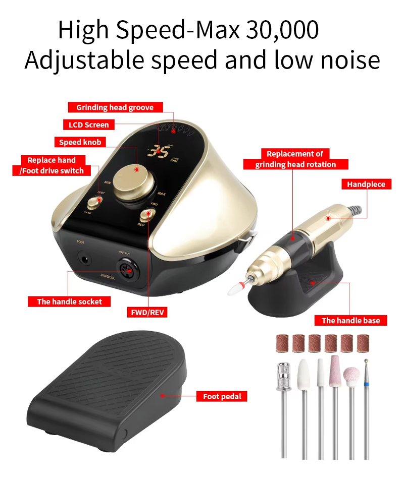 Потребан сет електричних бушилица за нокте 65в 35000рпм