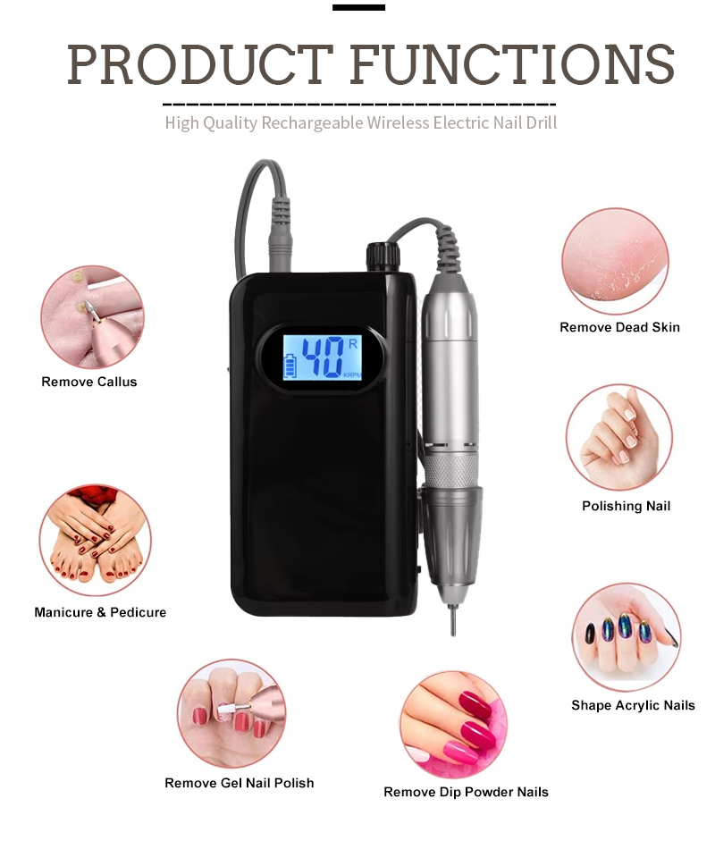Карактеристике производа и апликације К91 велике брзине 40.000 РПМ електрична датотека за нокте за уклањање лака за нокте