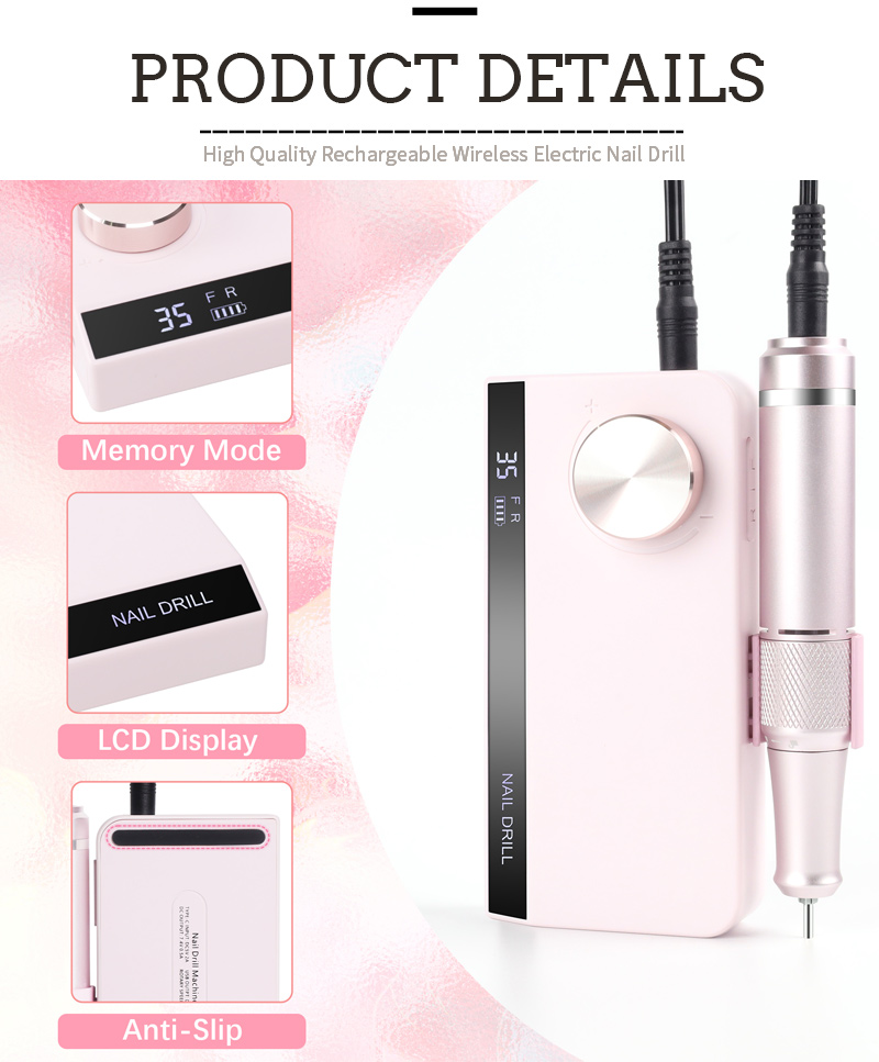 Комплет пуњивих бушилица за нокте Бушилица за нокте на прстима прстију 35в 35000рпм