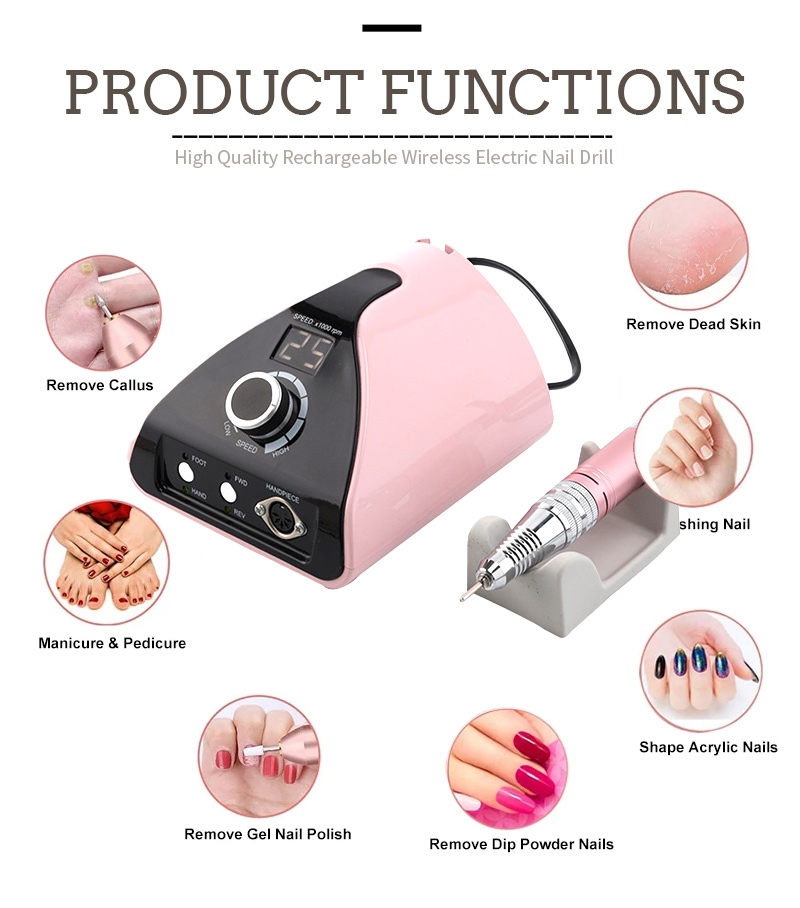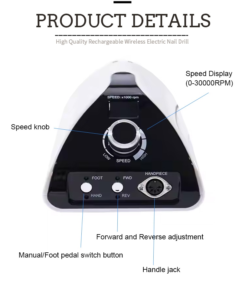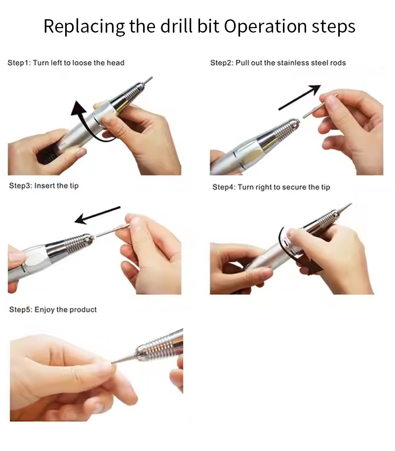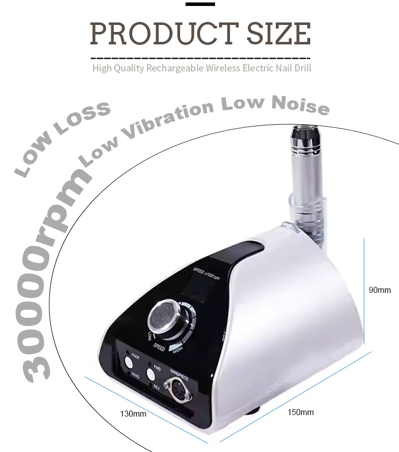 Ова професионална преносива машина за бушење ноктију са 35.000 обртаја у минути заменска бушилица, то јест, укључите и извуците, лако и практично, замена се може користити након завршетка.
