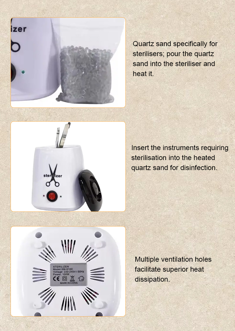 Овај стерилизатор првенствено генерише топлоту кроз грејни прстен, користећи високе температуре за дезинфекцију.