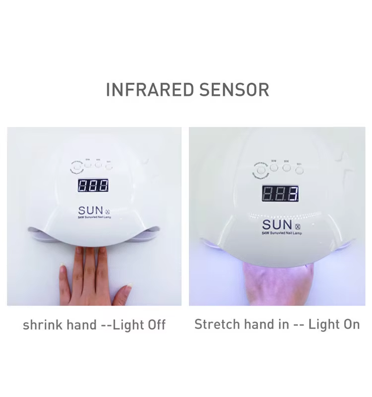 Лампа за нокте са гелом који се брзо суши има инфрацрвену технологију паметног сенсинга која се аутоматски пали када се руке приближе и гаси када се руке удаље – елиминишући муку узастопног притискања дугмади и штеди време и труд. Лепак за печење велике снаге не захтева дуго чекање, штедећи време и труд.