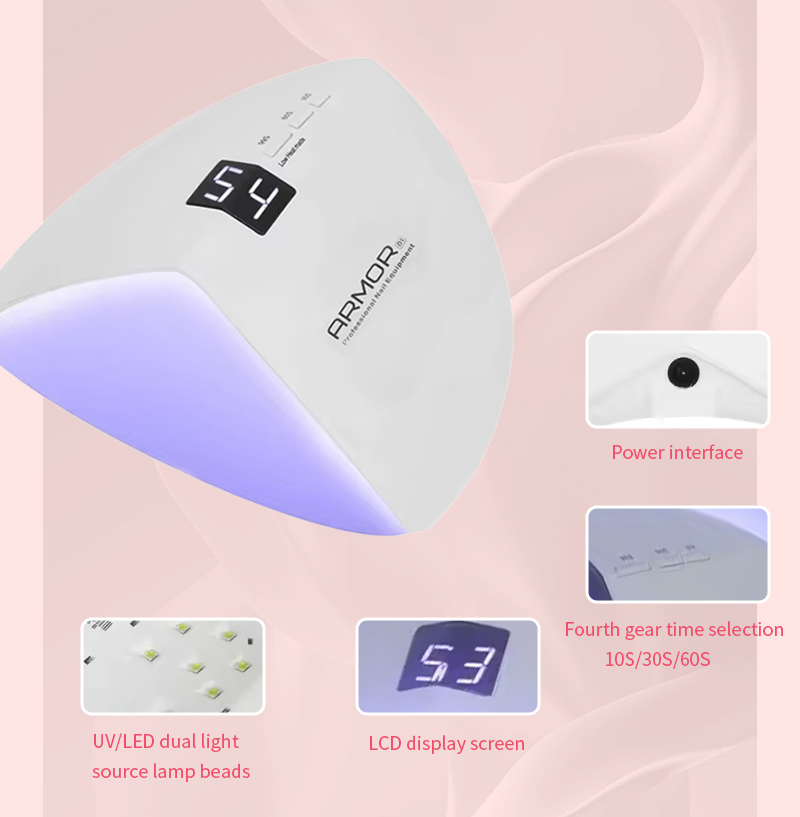 Производ обезбеђује равномерно сушење лепка без скупљања. Његови двоструки извори светлости обезбеђују нежно загревање како би спречили промену боје руку и напрезање очију, погодно за руке и стопала, дајући изузетно брзе резултате сушења.