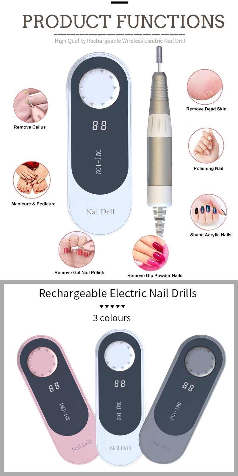ДМЈ-102 Брзе брзине 35.000 РПМ електрична датотека за нокте за уклањање пољског уклањања: Карактеристике и апликације