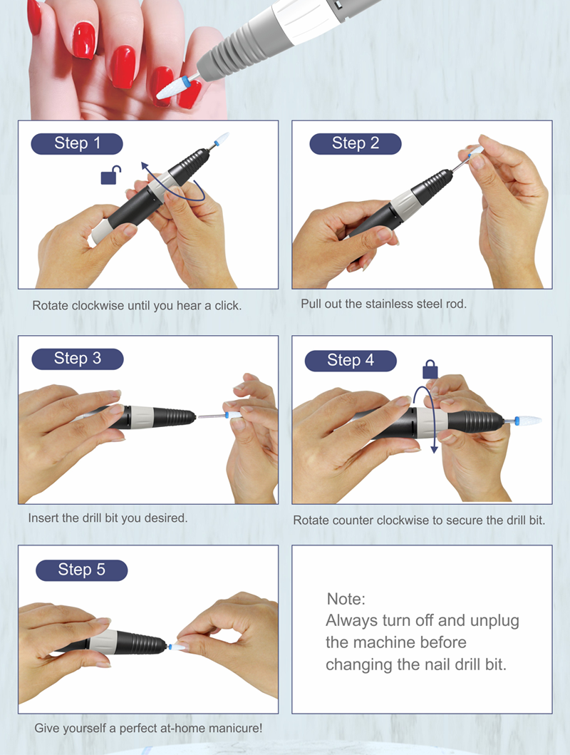 Потребан сет електричних бушилица за нокте 65в 35000рпм