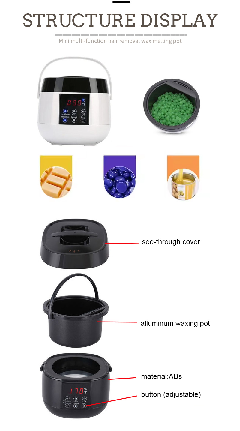 Велики капацитет за топљење широког спектра зрна воска. АБС пластична шкољка, отпорна на високе температуре, љуска је сјајнија.